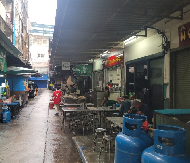 구글 지도를 따라 도착하면 시장길 같은 곳이 나오는데, 그 안으로 들어가 오른편에 짜런쌩 실롬 가게가 있습니다. 빨간색 간판이 눈에 띄어 찾기 어렵지 않았습니다.