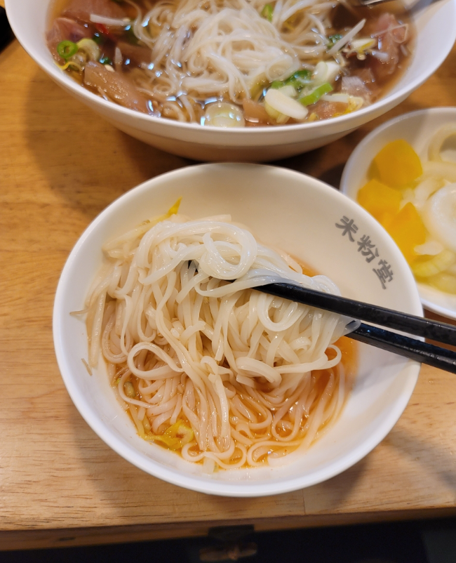 다른 곳에서는 흔하게 볼 수 없는 메뉴인데, 힘줄이 정말 부드럽고 쫄깃해서 너무 맛있습니다. 양지는 질긴 경우가 있고, 차돌박이 쌀국수는 다른 곳에서도 자주 먹기 때문에 미분당에서는 무조건 힘줄 쌀국수만 먹습니다.